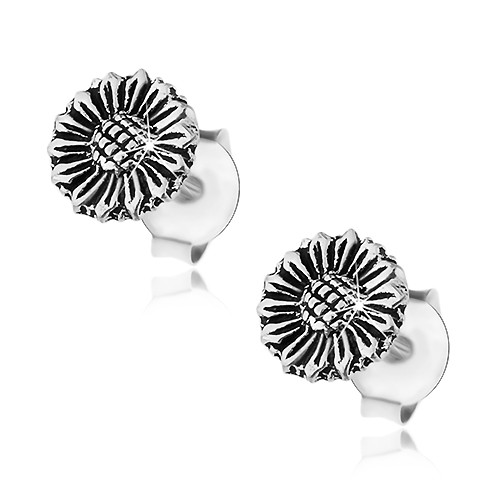 Popis produktu Stříbrné náušnice 925, patinovaný květ slunečnice, puzetky