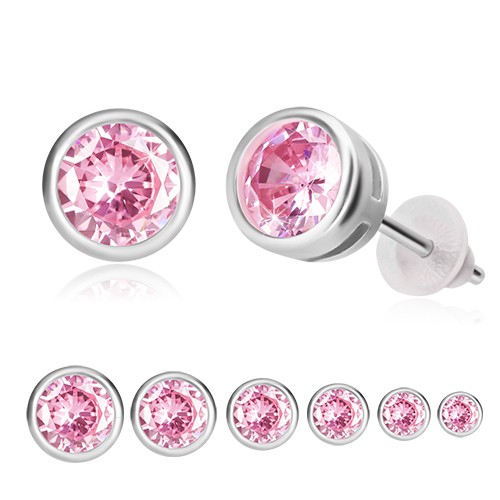 Stříbrné náušnice 925 - růžový zirkon, kulatá objímka, puzetky - Hlavička: 6 mm od Šperky Eshop - toto zboží si můžete zakoupit s unikátní slevou za 193 CZK. Zboží zařazené v našem katalogu vás nezklame. A to ještě není všechno, dopravu za vás hradí e-shop, když hodnota vašeho košíku přesáhne Kč. Už se těšíte na svoji objednávku?