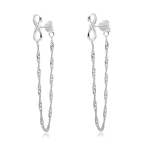 Stříbrné náušnice 925, symbol INFINITY, řetízek spojený s brzdítkem