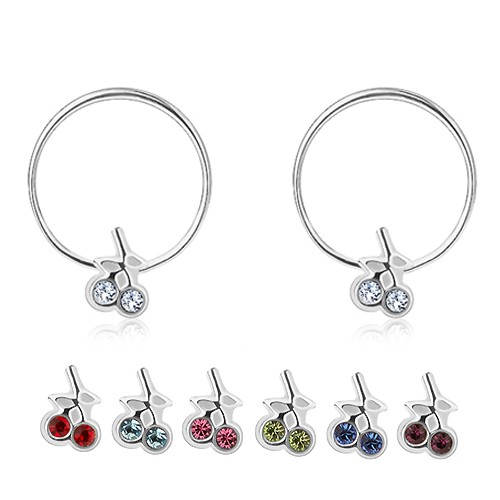 Popis produktu Stříbrné náušnice 925 - tenké kruhy s třešničkami z krystalů Swarovski - Barva: Modrá