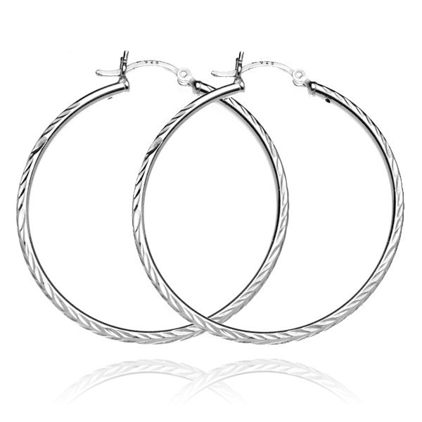 Popis produktu Stříbrné náušnice 925 - úzké kruhy s klasy, 40 mm