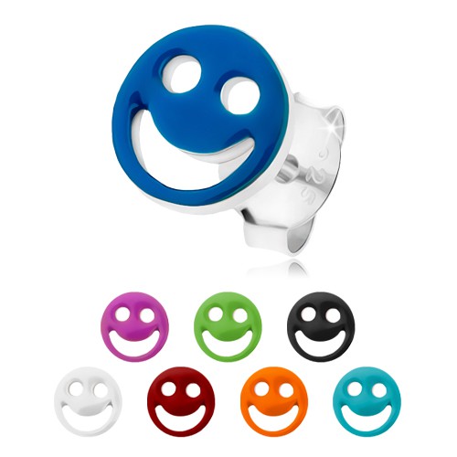 Popis produktu Stříbrné náušnice 925, veselý smajlík s barevnou glazurou, výřez - oči a ústa - Barva: Zelená