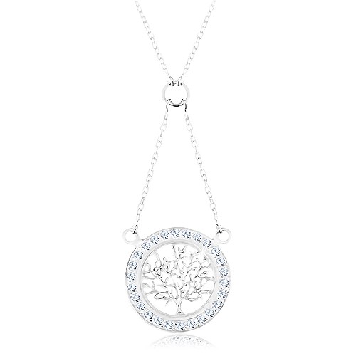 Stříbrný 925 náhrdelník, řetízek a přívěsek - strom života se zirkonovou obrubou