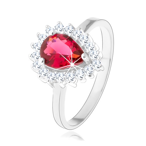 Popis produktu Stříbrný 925 prsten, červená zirkonová slza, čirý třpytivý lem - Velikost: 57