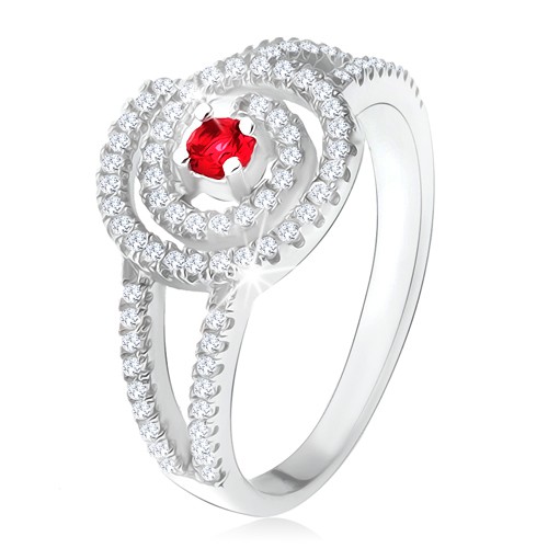 Popis produktu Stříbrný 925 prsten, čirá zirkonová spirála, rubínový kamínek - Velikost: 55