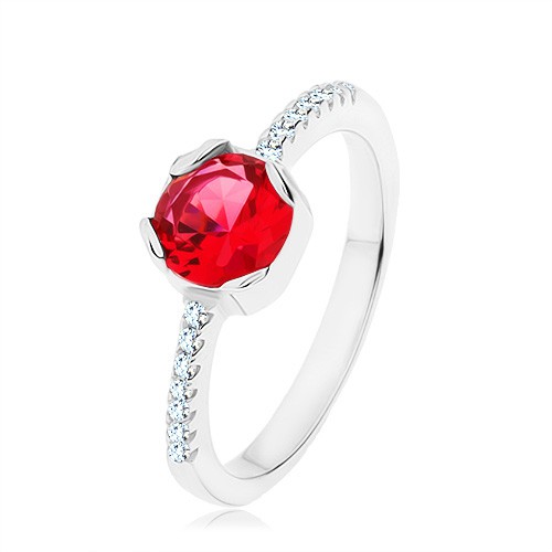 Stříbrný 925 prsten, kulatý červený zirkon, úzká ramena, čiré zirkony - Velikost: 54 od kvalitní značky Šperky Eshop - toto zboží pořídíte v jedinečné akci za 328 CZK. S pomocí našeho katalogu nakoupíte pohodlně z mobilu, tabletu nebo od počítače. DOPRAVA ZDARMA nyní i bez speciálního kupónu, pro objednávky nad Kč. Lepší nabídku už na trhu hledat nemusíte.