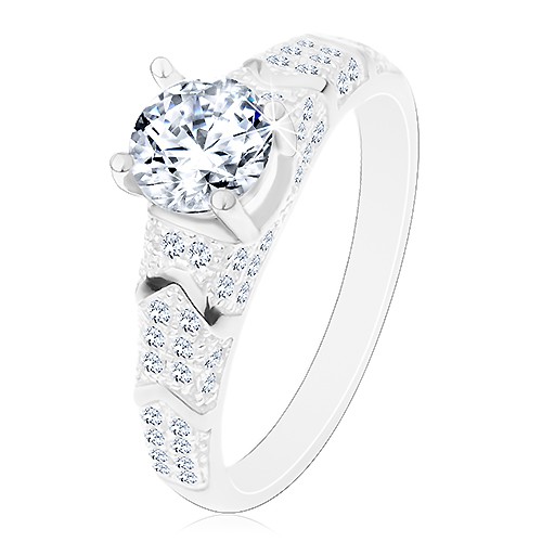 Popis produktu Stříbrný 925 prsten, kulatý zirkon čiré barvy, třpytivá ramena, obloučky - Velikost: 63