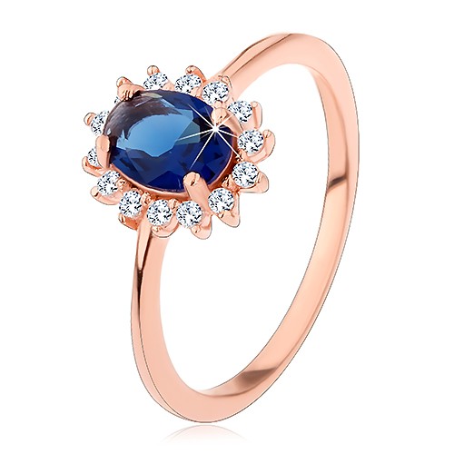 Popis produktu Stříbrný 925 prsten měděné barvy, tmavomodrý oválný zirkon s čirou obrubou - Velikost: 51