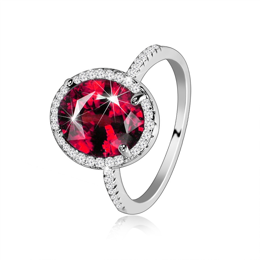 Popis produktu Stříbrný 925 prsten - oválný červený zirkon, čirá zirkonová obruba - Velikost: 56