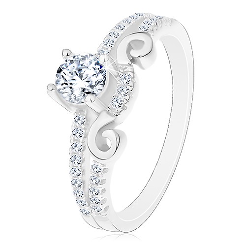 Stříbrný prsten 925 s lesklými rozdvojenými rameny, čirý zirkon a linie drobných čirých zirkonků, tenké spirálky.Nabízíme nejlepší poměr cena výkon. Už se těšíte na svoji objednávku?