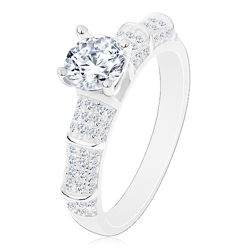 Popis produktu Stříbrný 925 prsten, třpytivá ramena, vyvýšený kulatý zirkon čiré barvy - Velikost: 59