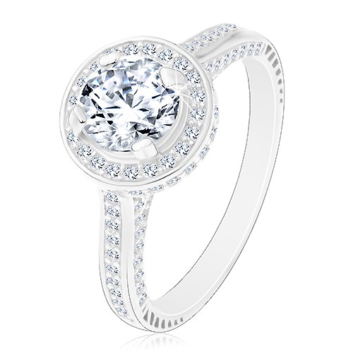 Stříbrný 925 prsten, zářivý kulatý zirkon čiré barvy ve třpytivém kruhu - Velikost: 65