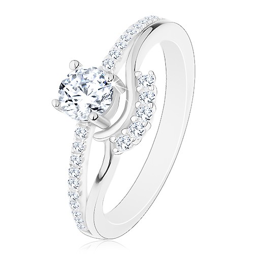 Popis produktu Stříbrný 925 prsten - zásnubní, rozdělená ramena, zirkon, vlnky a třpytivá linie - Velikost: 60