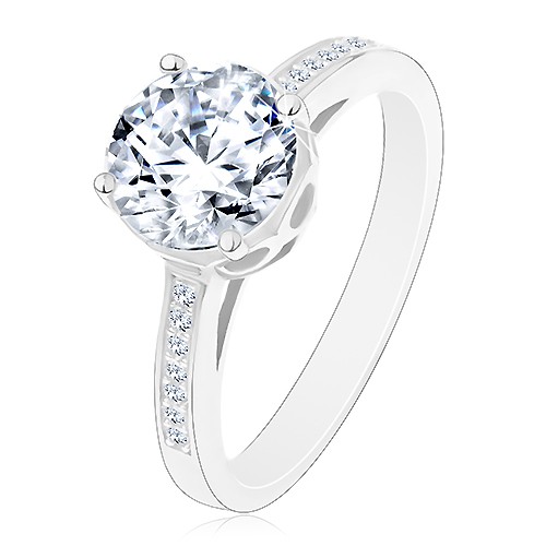 Popis produktu Stříbrný 925 prsten - zásnubní, velký kulatý zirkon čiré barvy v ozdobném kotlíku - Velikost: 49