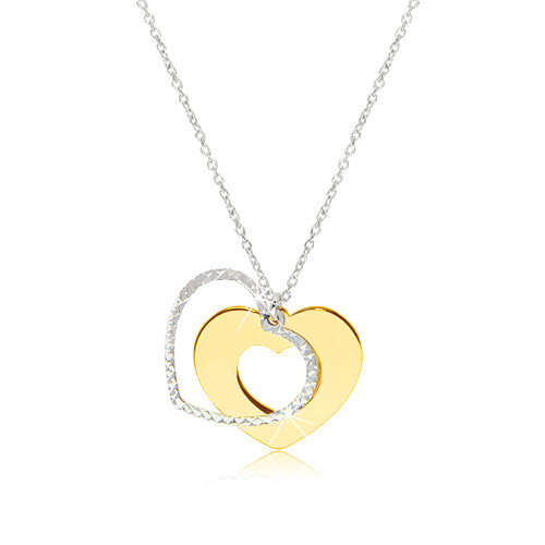 Stříbrný náhrdelník 925 - lesklé srdíčko zlaté barvy s třpytivou konturou