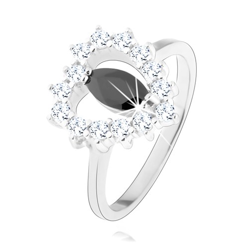 Popis produktu Stříbrný prsten 925, černý zirkon - zrnko, srdcovitý obrys, čiré zirkony - Velikost: 50