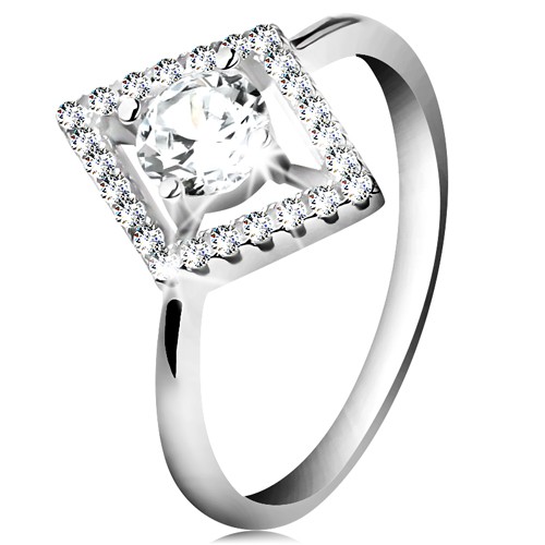 Popis produktu Stříbrný prsten 925, čirý kulatý zirkon v třpytivém obrysu kosočtverce - Velikost: 54