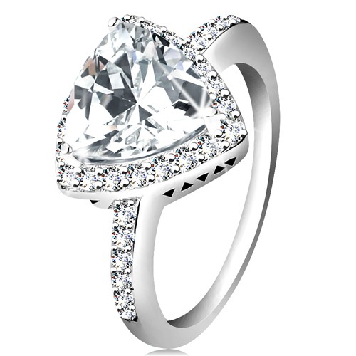 Popis produktu Stříbrný prsten 925, čirý trojúhelníkový zirkon, blýskavý lem, výřezy - Velikost: 51