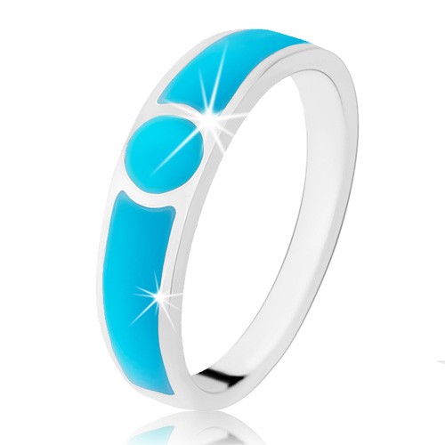 Popis produktu Stříbrný prsten 925, dva pásy a kruh z tyrkysu, hladký lesklý povrch - Velikost: 59