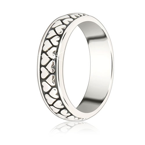 Popis produktu Stříbrný prsten 925 - dvě řady otočených srdíček s patinou - Velikost: 56