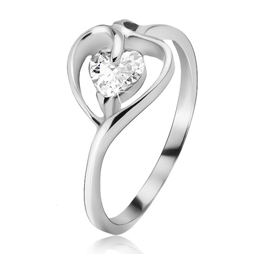 Popis produktu Stříbrný prsten 925, kontura srdce s čirým zirkonem - Velikost: 61