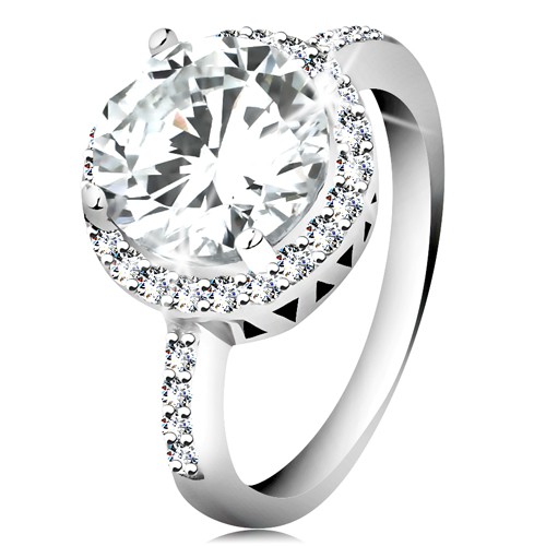 Popis produktu Stříbrný prsten 925, kulatý broušený zirkon, čirý zirkonový lem - Velikost: 49