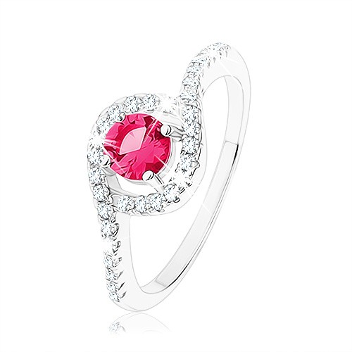Popis produktu Stříbrný prsten 925, kulatý červený zirkon se zvlněným čirým lemem - Velikost: 54