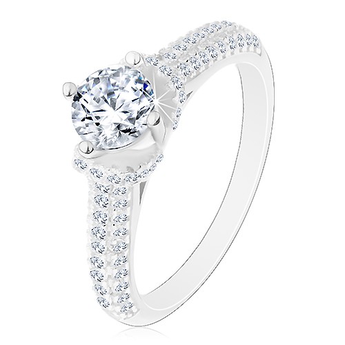 Popis produktu Stříbrný prsten 925, kulatý čirý zirkon, čirá zirkonová ramena - Velikost: 49