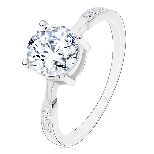 Popis produktu Stříbrný prsten 925, kulatý zirkon čiré barvy, zirkonky na ramenech - Velikost: 60