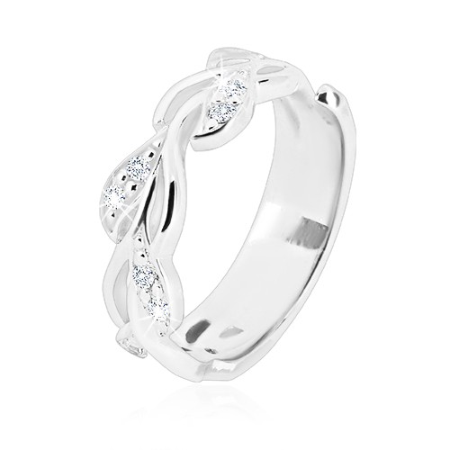 Popis produktu Stříbrný prsten 925 - lesklý stonek s lístky a třpytivými zirkonky - Velikost: 52