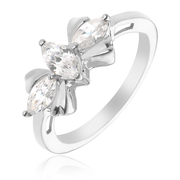 Popis produktu Stříbrný prsten 925 - mašle se třemi čirými kameny - Velikost: 54