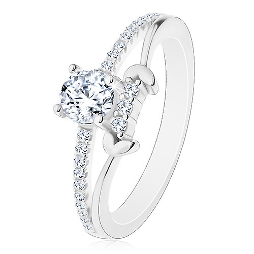 Zásnubní prsten, stříbro 925 - lesklá rozdělená ramena, třpytivé zirkonové linie a velký kulatý zirkon ve čtyřcípém kotlíku.Ceny zboží a skladovou dostupnost neustále aktualizujeme. Pokud budete spokojeni, doporučte nás prosím svým známým.