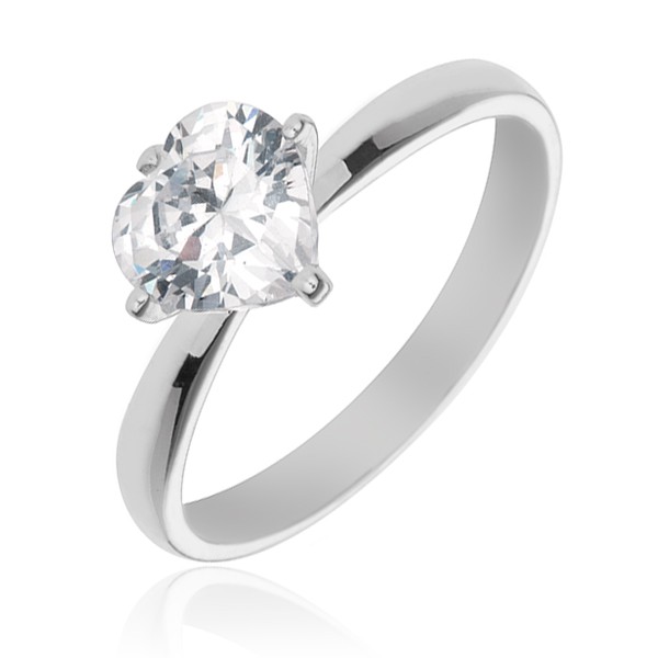 Popis produktu Stříbrný prsten 925 s vystouplým čirým zirkonovým srdcem - Velikost: 65