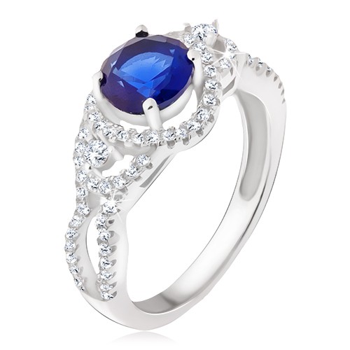 Prsten ze stříbra 925, okrouhlý modrý kamínek s čirým zirkonovým lemem, zaoblené linie.Nabídku v našem katalogu pro vás připravuje tým odborníků. Udělejte si radost.