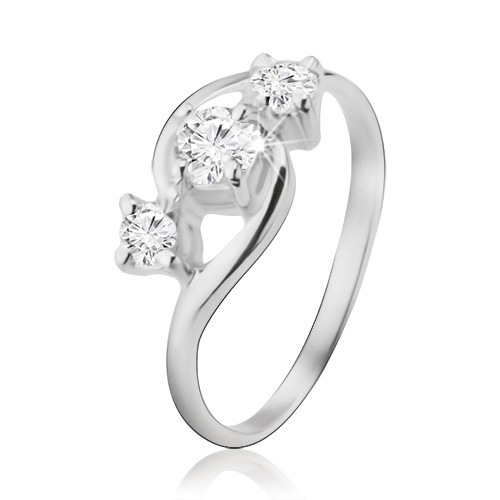 Popis produktu Stříbrný prsten 925, tři diagonálně uložené zirkony, zaoblená ramena - Velikost: 55
