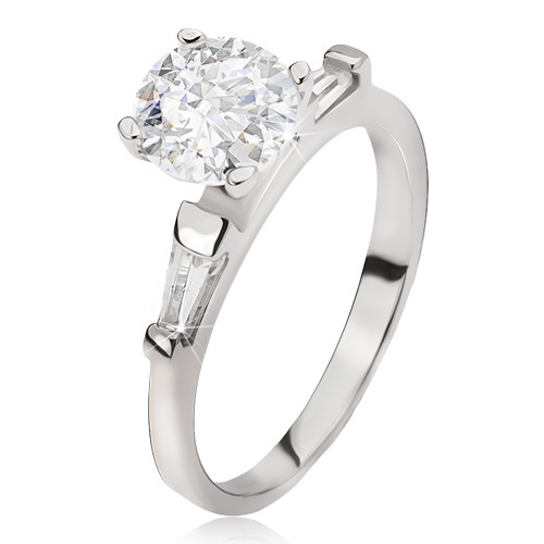 Popis produktu Stříbrný prsten 925 - velký čirý kulatý zirkon, lichoběžníkové kamínky - Velikost: 57
