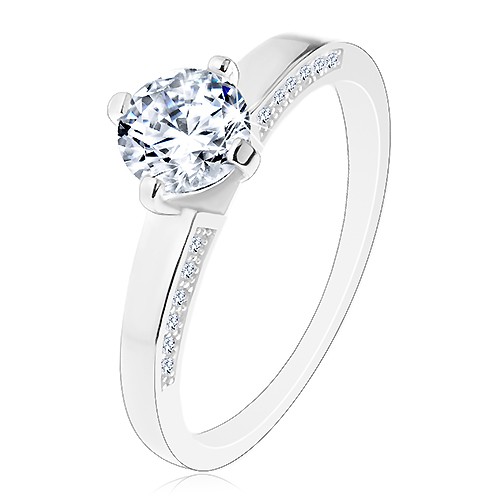 Popis produktu Stříbrný prsten 925 - zásnubní, blýskavý broušený zirkon, zdobená ramena - Velikost: 60