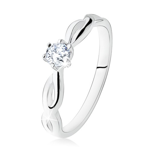 Popis produktu Stříbrný prsten 925, zásnubní, čirý kamínek, spirálovitá ramena - Velikost: 50
