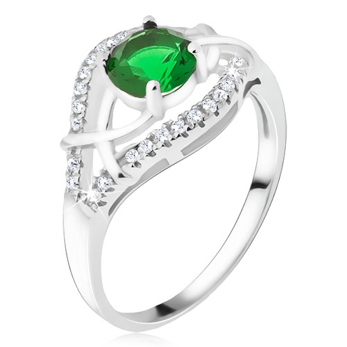 Popis produktu Stříbrný prsten 925 - zelený okrouhlý kamínek, zirkonová ramena - Velikost: 64