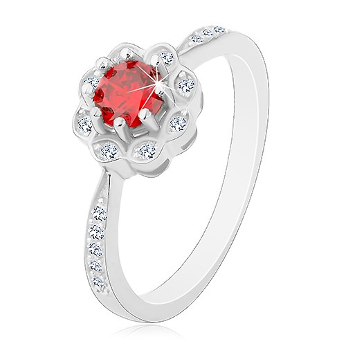Popis produktu Stříbrný rhodiovaný prsten 925, blýskavý kvítek s červenooranžovým zirkonem - Velikost: 48