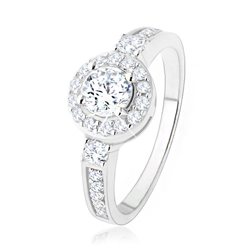 Popis produktu Stříbrný zásnubní prsten 925, čiré zirkonové slunce, blyštivé kamínky - Velikost: 57