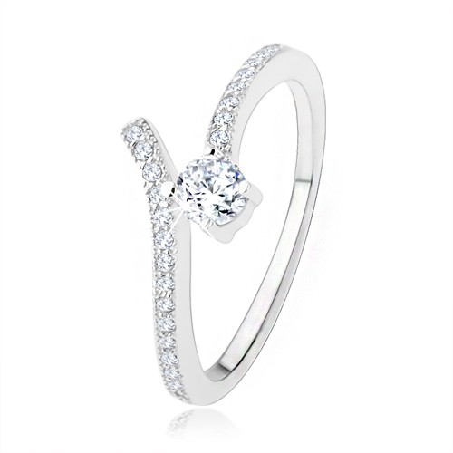 Popis produktu Stříbrný zásnubní prsten 925, rozdvojená ramena, čiré zirkony - Velikost: 51