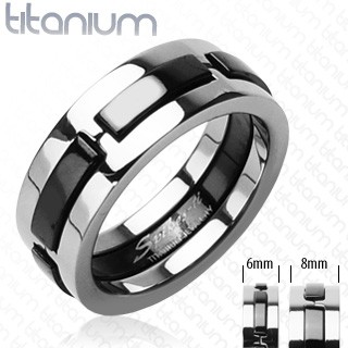 Popis produktu Titanový prsten s černými vystouplými pásy - Velikost: 66