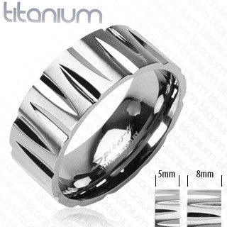 Popis produktu Titanový prsten zářezy ve tvaru náboje - Velikost: 54