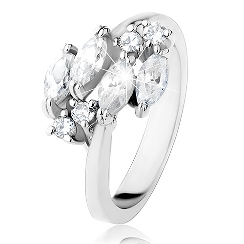 Lesklý prsten ve stříbrném odstínu, blýskavé zirkony čiré barvy, hladká lesklá ramena.Nakupujte v našem e-shopu za skvělé ceny. Naše heslo: kvalita, výhodná cena, prozákaznický přístup.
