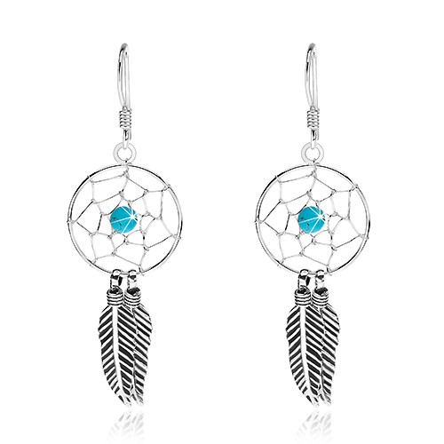 Popis produktu Visací náušnice, stříbro 925, světle modrý korálek, lapač snů, 15 mm