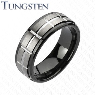 Popis produktu Wolframový broušený prsten, černé okraje - Velikost: 66