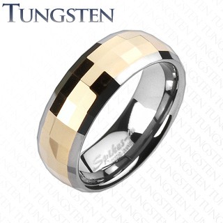 Popis produktu Wolframový prsten - obdélníkové lomené zlaté dlaždice - Velikost: 49