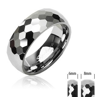 Popis produktu Wolframový prsten stříbrné barvy, broušené lesklé šestihrany, 6 mm - Velikost: 54