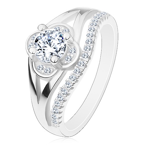 Popis produktu Zásnubní prsten, stříbro 925, čirý zirkonový kvítek a linie drobných zirkonů - Velikost: 61